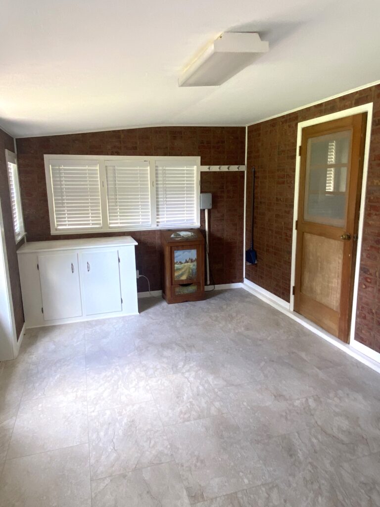 This home has three bedrooms and two full baths, one of which is in the master bedroom. All bedrooms are carpeted, while kitchen and bathrooms are luxury linoleum. The laundry room in this home is located off the kitchen and also gives access to the garage making it a great “mud room” for those times when it’s necessary to kick off those shoes! Whirlpool washer, dryer, and upright freezer will convey with full price. This laundry room also gives access to an enclosed sleeping porch, office, play room, or general “bonus room”.