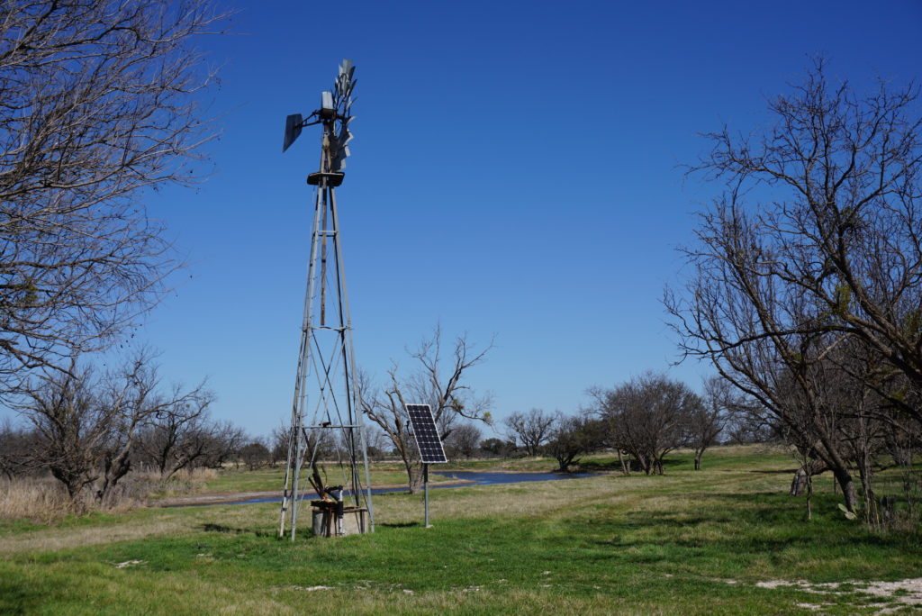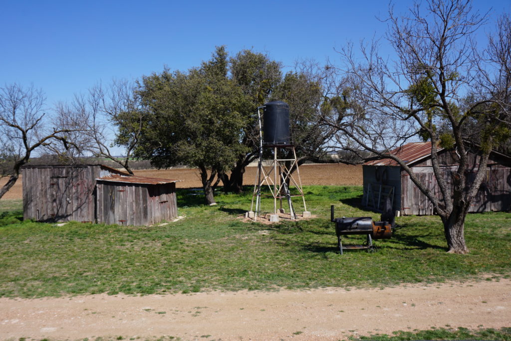 The water well has a solar powered electric submersible pump. For water storage, a newer storage tank is elevated near the house.