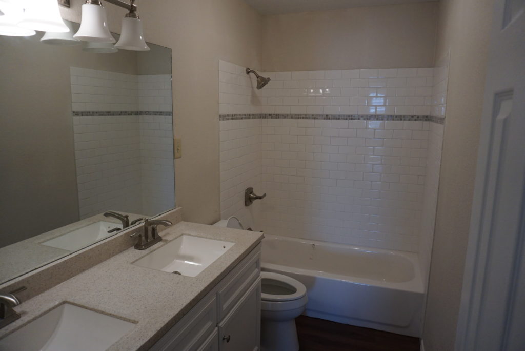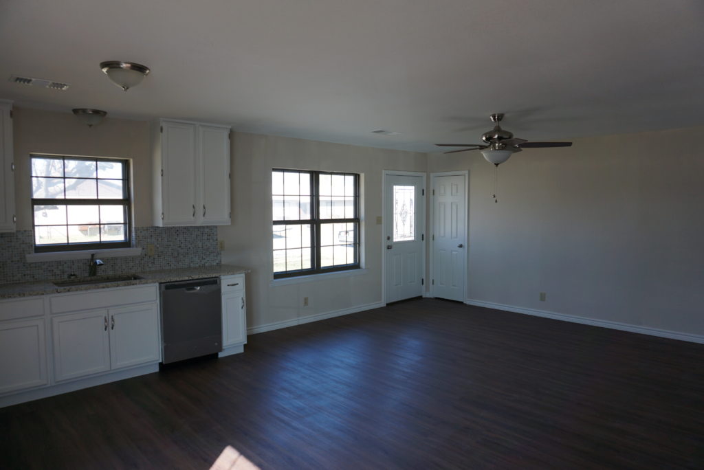 The home is on a slab foundation, *1,125 sq. ft., two bedrooms and one bath with double sinks, tub and shower, all brand new.  The master bedroom has a walk-in closet.