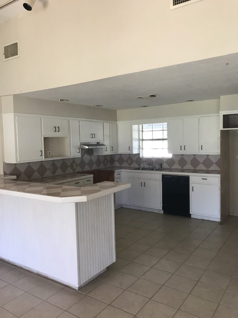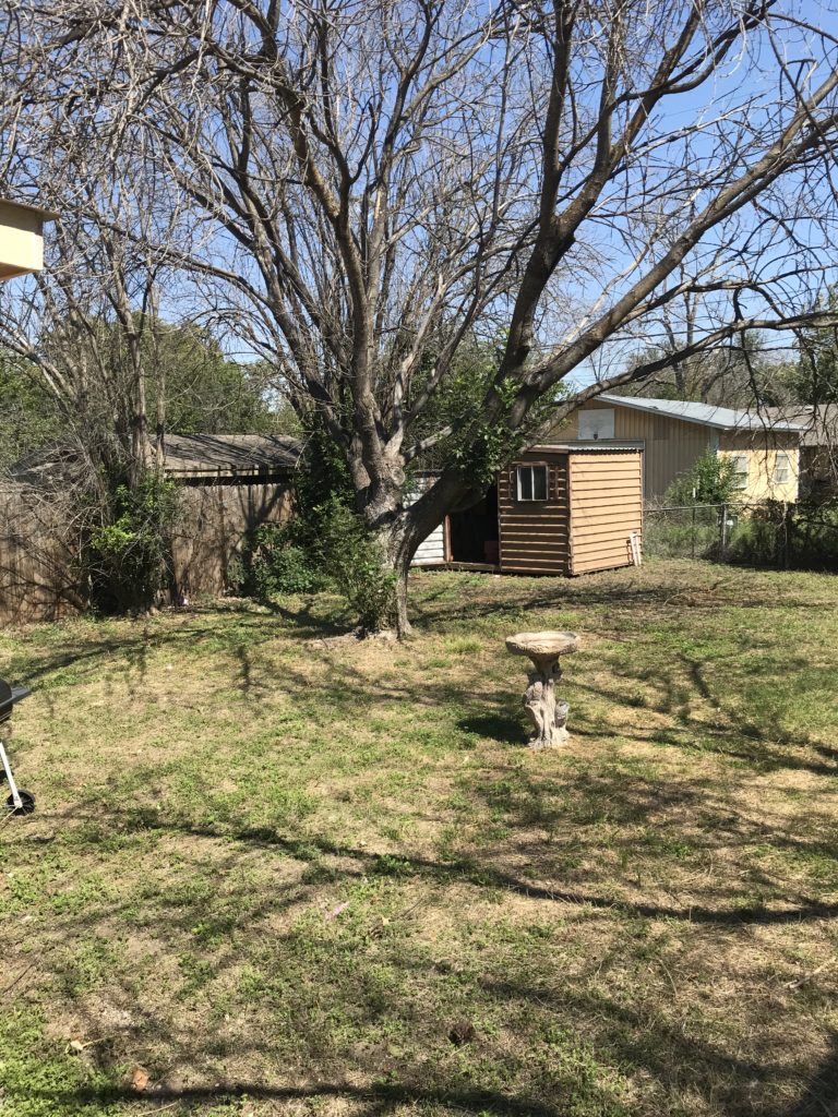 The backyard of this home is very good sized and is partially privacy fenced while another portion is chain link.  There is a two vehicle carport as well as a small alcove by the front door.
