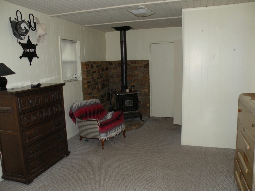 The master bedroom has an earth stove as well. It also has a walk in closet. The master bath contains the washer & dryer. A split design puts the other two bedrooms on the other side of the home with their own bath which serves as the guest bath as well.