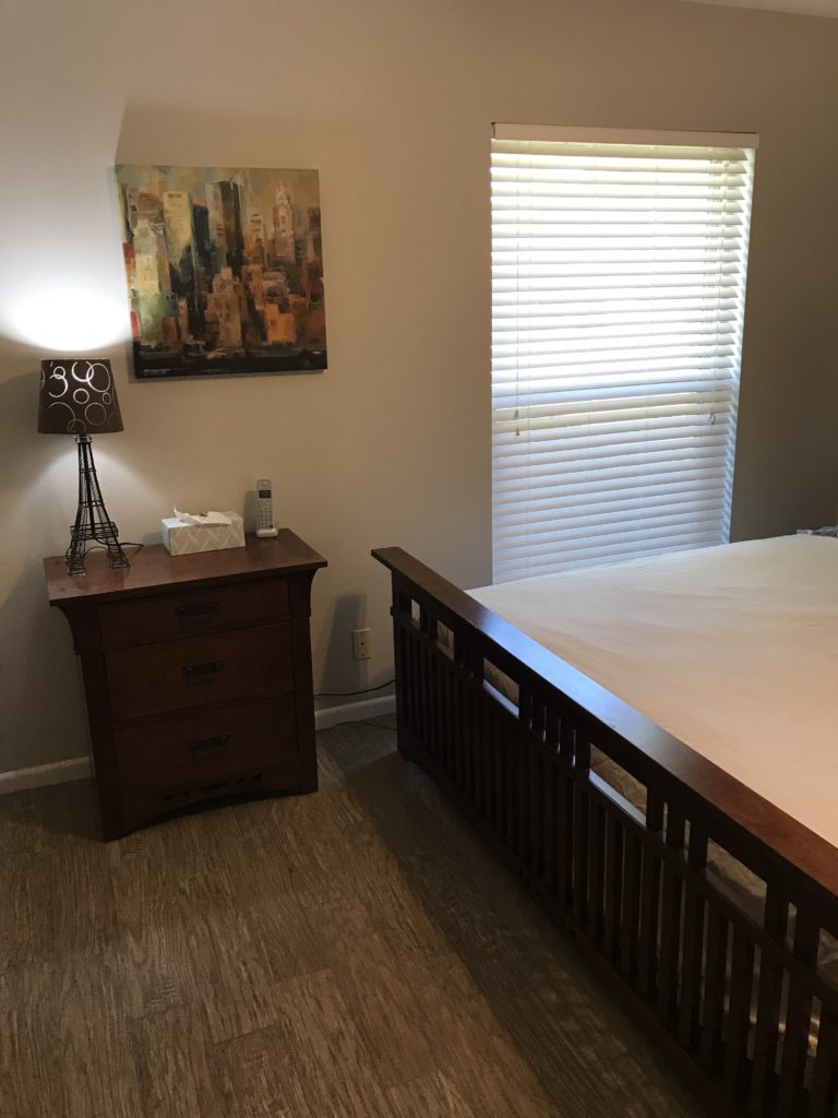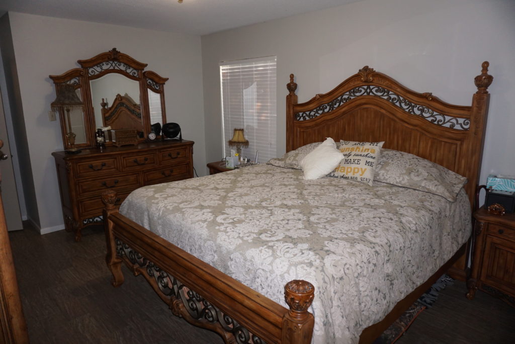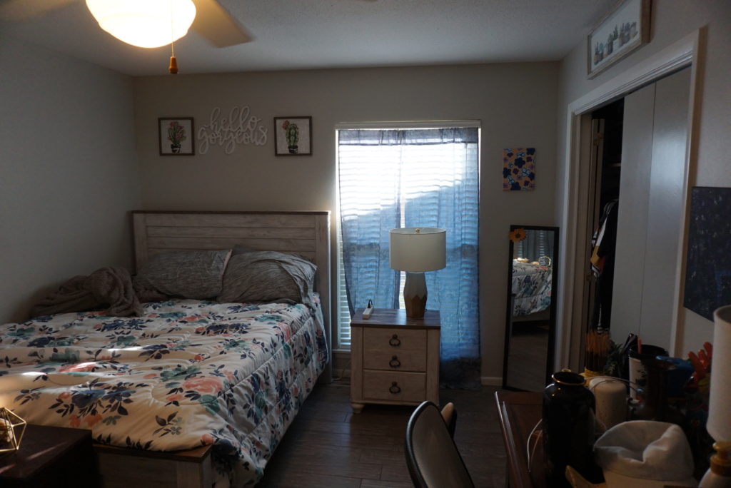 The three bedrooms are on the east & south side of the home. The master has a huge walk-in closet and its own bath with shower. The guest bath is in the hall and easily accessed by the other two bedrooms as well as the living room.