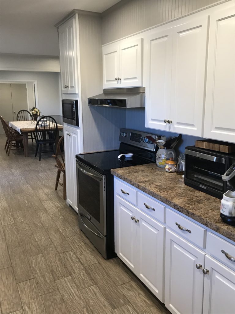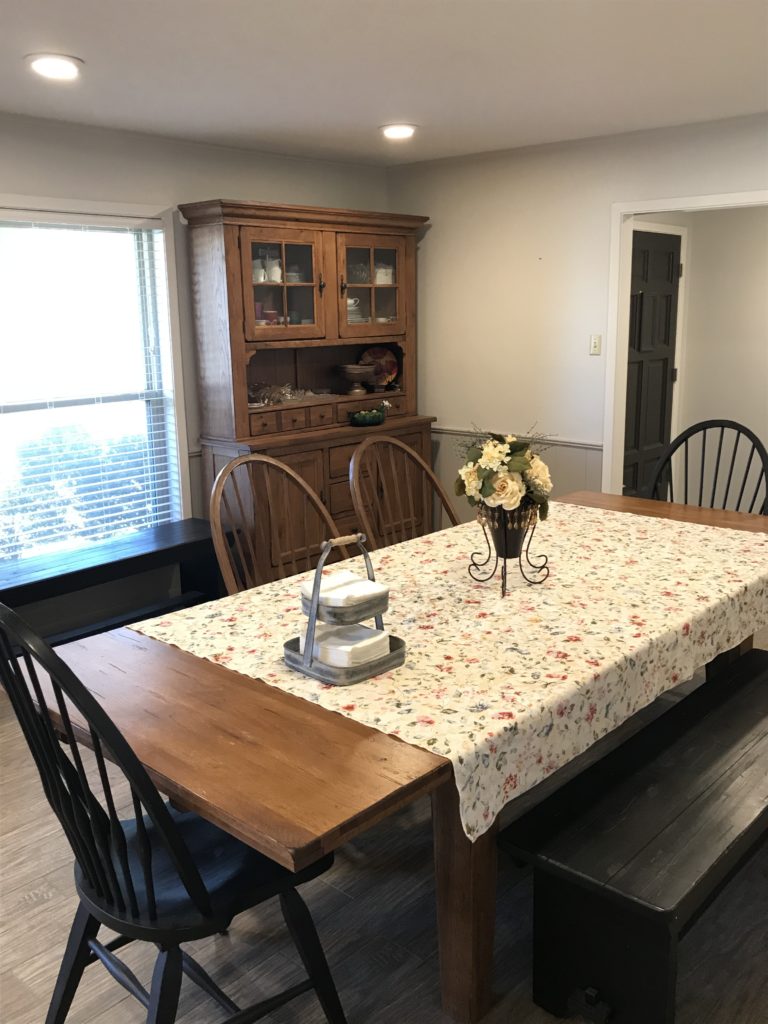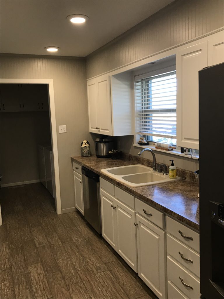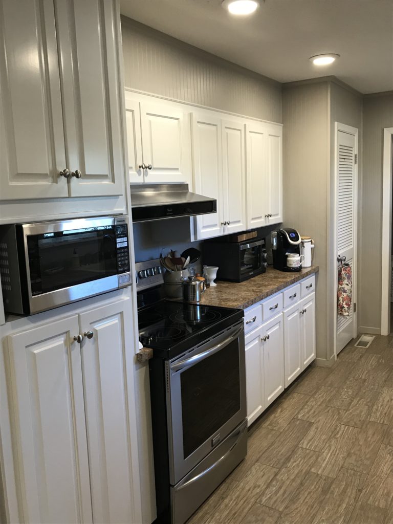 It is a 3BR/2BA home, with a separate formal dining area as well a large eat in kitchen area. The kitchen has lots of counter space and cabinetry. The microwave has its own built in space above the counters, which of course, leaves more space for “essential” kitchen gadgets. There is a small pantry area in the kitchen as well as a custom built pantry. Everyone needs a place to store all the necessary “Tupperware” we’ve all collected along the way. The laundry/utility room is off the kitchen and leads to the enclosed garage.
