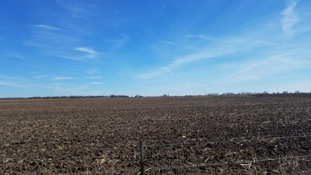 Terrain. The terrain is generally level, with 103 acres in improved field land and 60 acres of native pasture land. Typically planted in oats or corn, the fields produce lush green crops that are an attractant for deer and other wildlife.