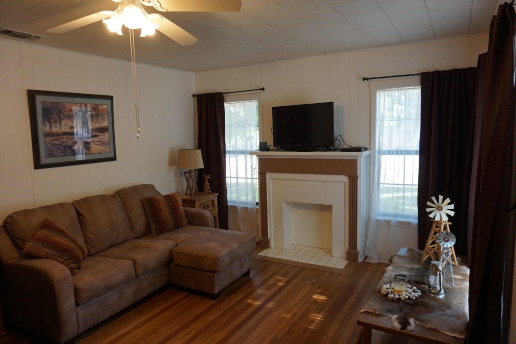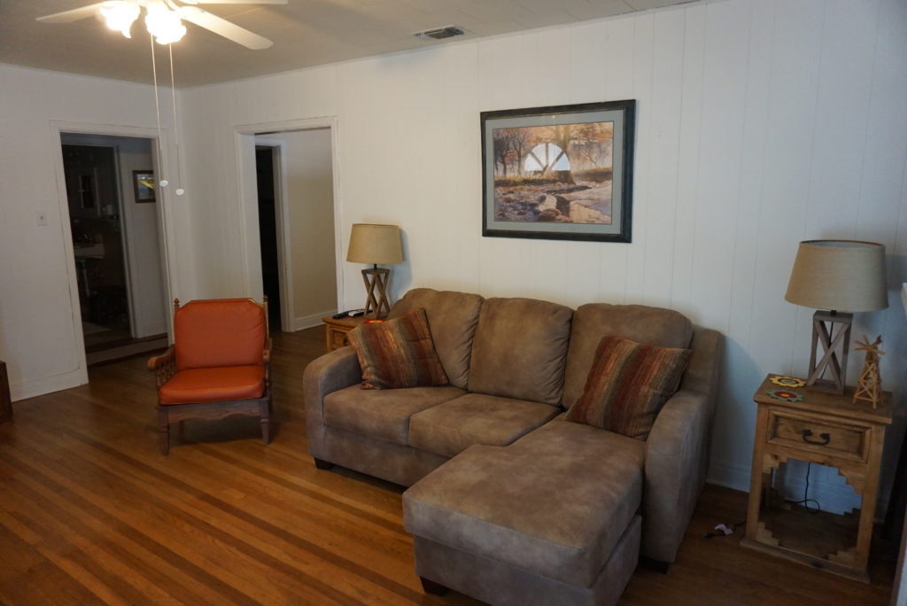 We have a lovely two bedroom, one bath home on a corner lot in Brady, Tx. This home has original Oak hardwood floors, except for the kitchen and bathroom where there is vinyl flooring. It has central heat and air, and a composition roof. It has just under 1,000 sq. ft., including an enclosed porch which has been converted to a laundry room. There is also a two car detached garage behind the home.