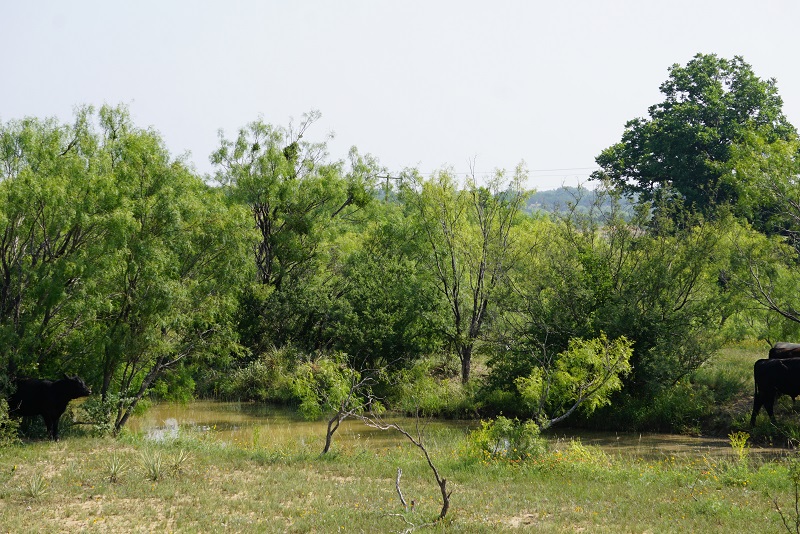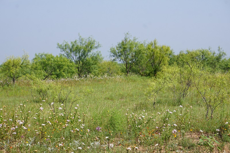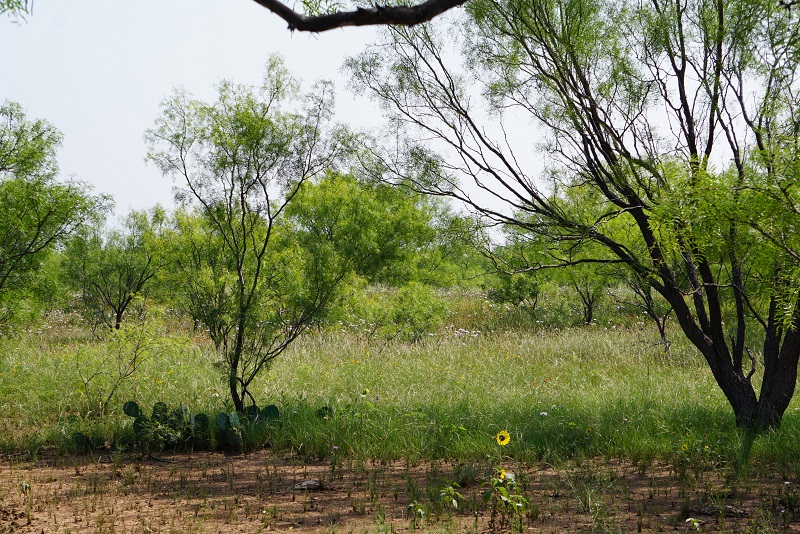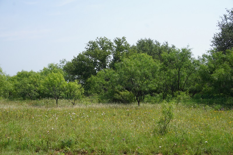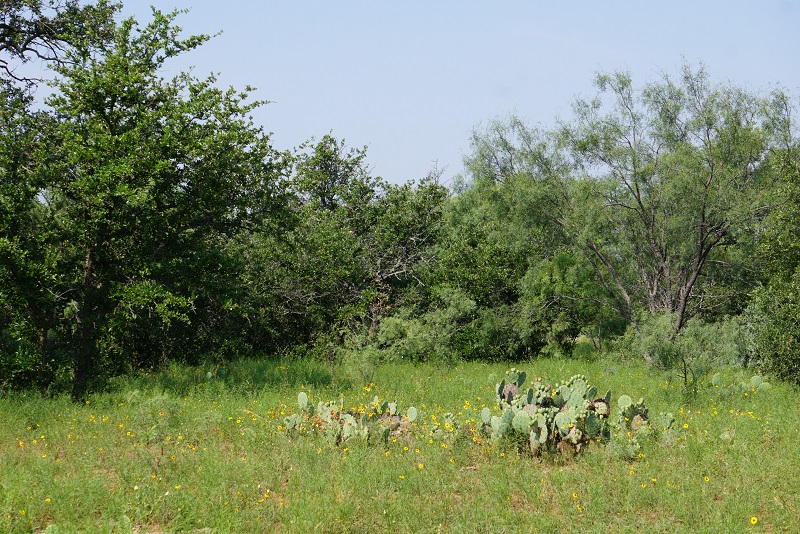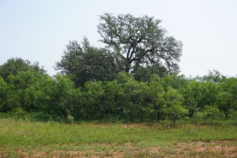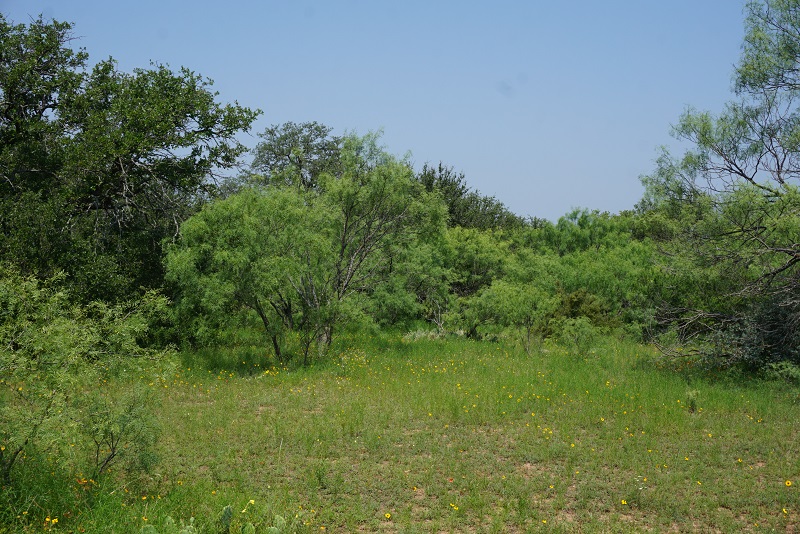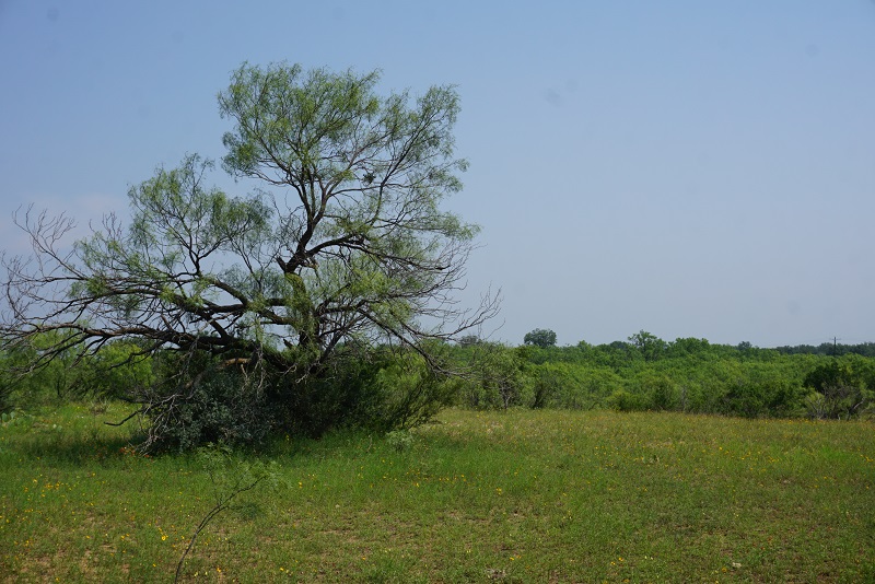 Terrain. The property is generally level with about 20 feet of elevation change on the east side, which makes some nice views. There are quite a few live oak trees, and the majority of the trees are mesquite. A few native pecan trees are on the east side.