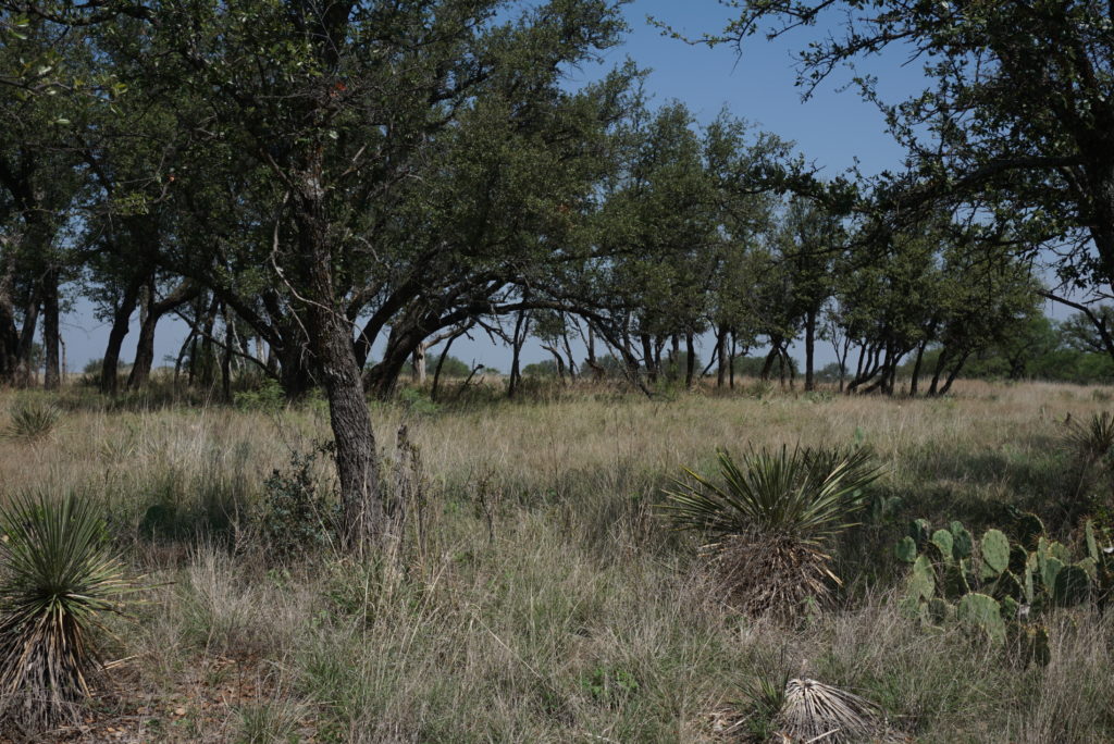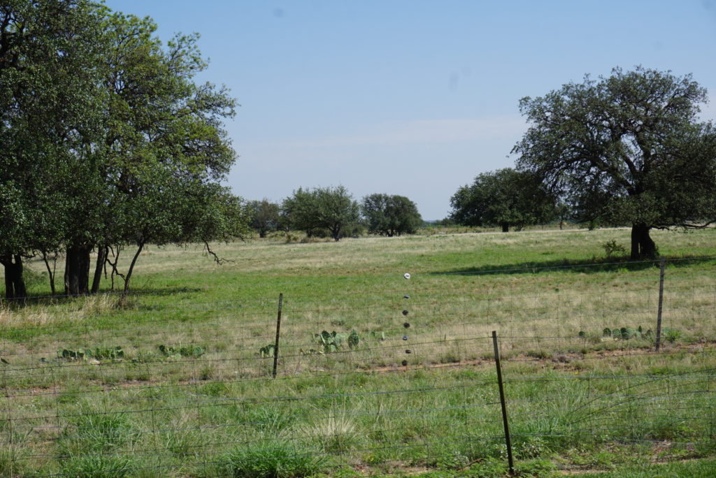 Terrain. The ranchland is gently sloping, and has nice Hill Country views. There are a number of live oaks, yet almost no cactus or cedar.