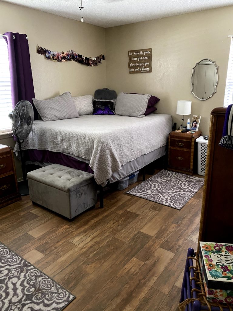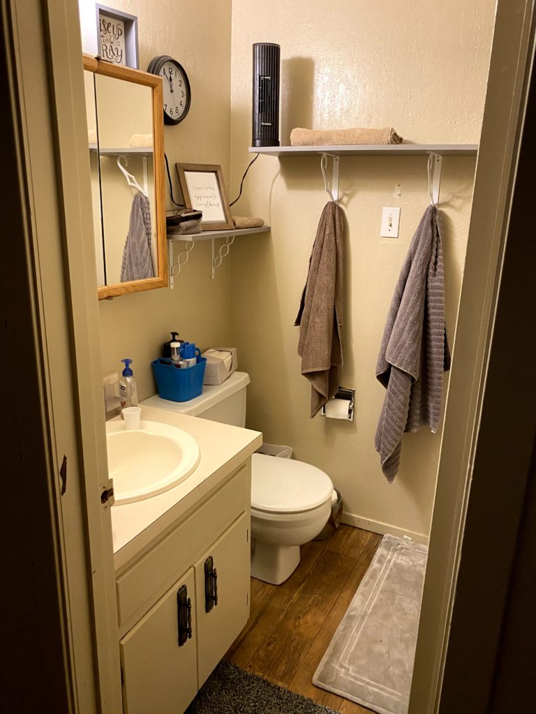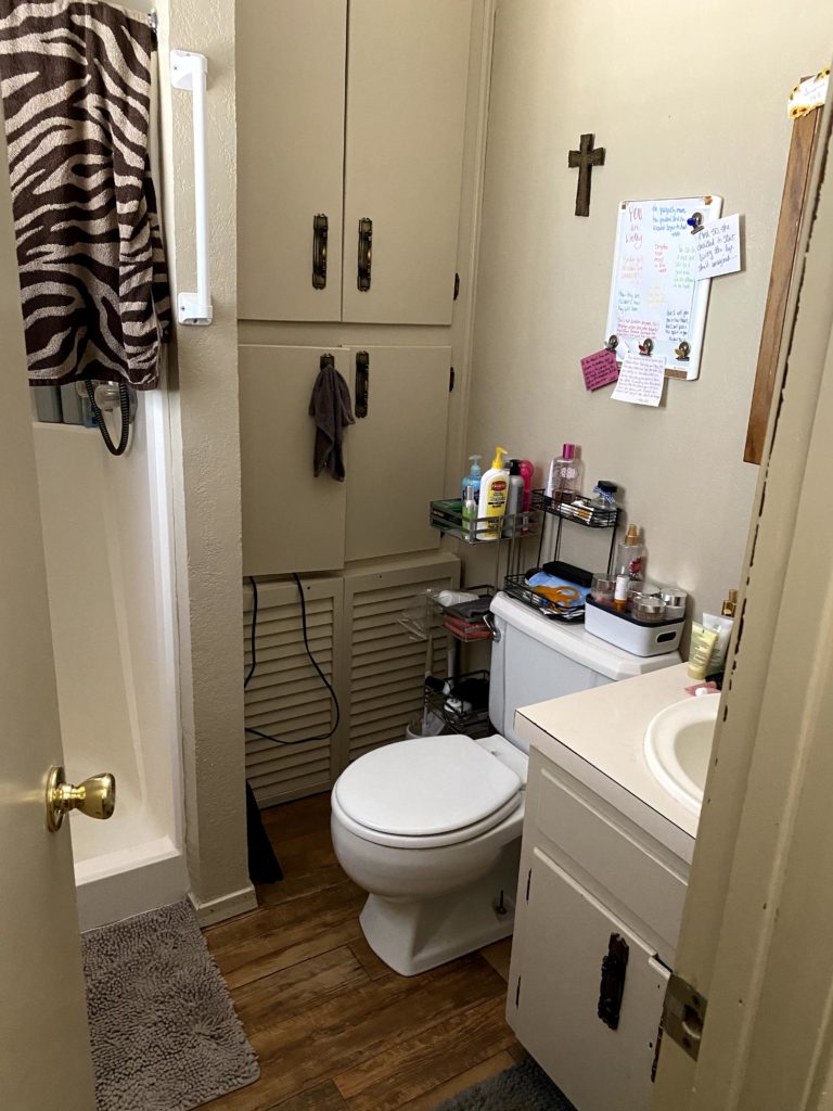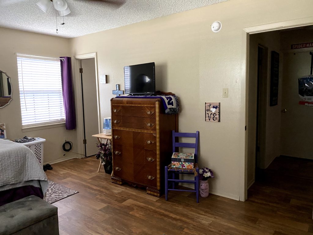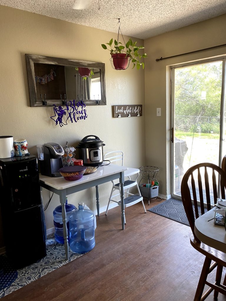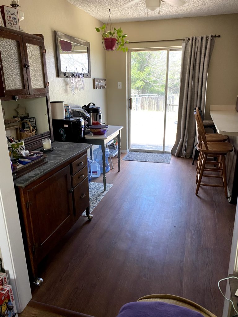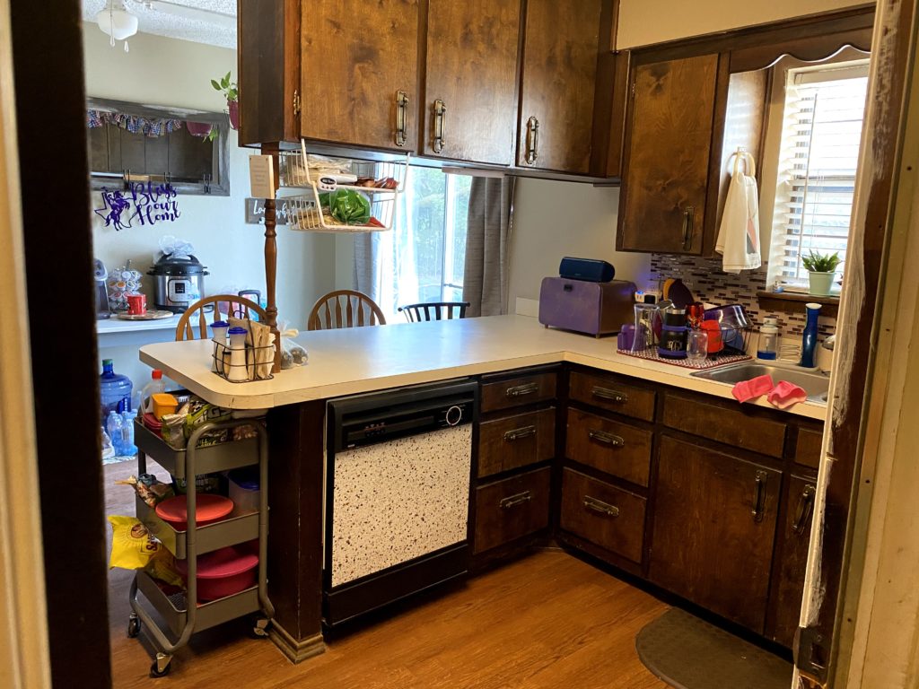 On the Southwest side of town, we have a lovely brick home which has been well maintained. The home has 1,044 sq. ft., which may seem small, but all space has been used creatively. It sits on a slab base and has a composition roof. There are three bedrooms with two baths. The former carpeting has been replaced with vinyl plank flooring throughout the home. The paint scheme in all rooms is neutral. No retouching needed, as the saying goes, “move in ready”.