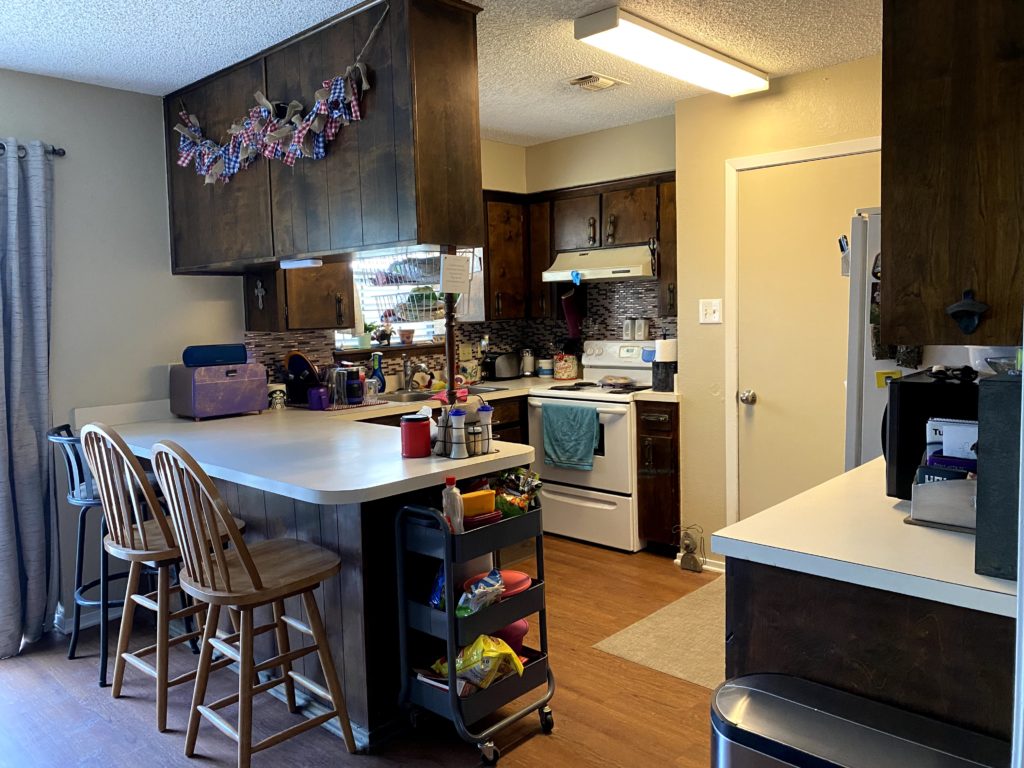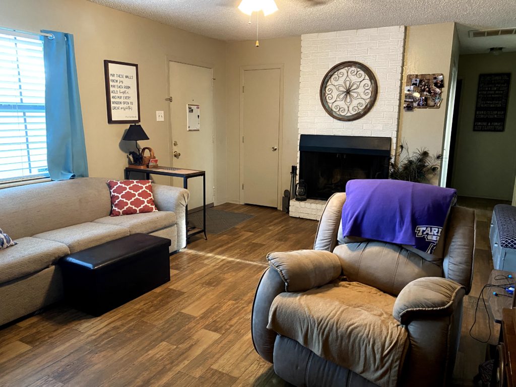 The kitchen has plenty of cabinetry and a large counter area dividing the kitchen from the dining area. An electric stove, dishwasher and refrigerator will convey. There is a sliding glass door that overlooks a small patio in the backyard which is fully enclosed by a chain link fence. In the living room, there is a white brick wood burning fireplace, ceiling fan and windows at the front of the home. It even has a small “coat closet” at the front entry. There is a single vehicle automatic garage door. The garage also holds the utility room with washer and dryer hookups. The fully compliant electric water heater was installed in 2017, and the CH/CA unit was replaced in 2015.