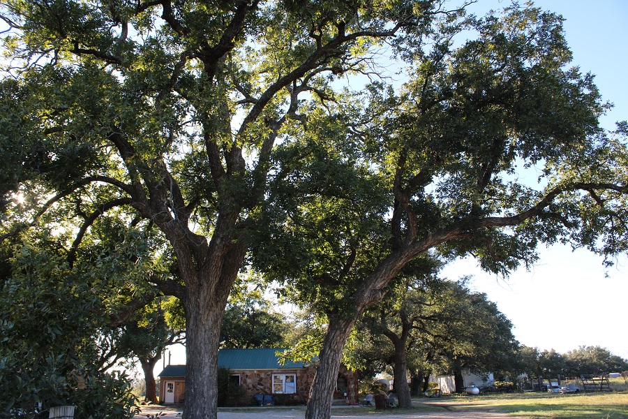 The main house is an older farmhouse of rock construction. It has a good metal roof that is only 2 years old. It is in a quiet, rural area and is surrounded by Huge Trees ! These enormous oak and pecan trees are watered by the abundant groundwater and they make the majority of the homesite shady and beautiful.